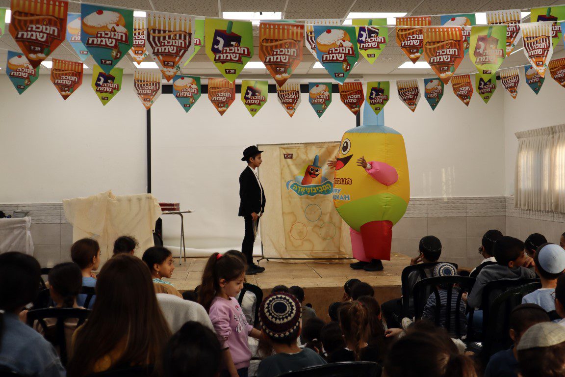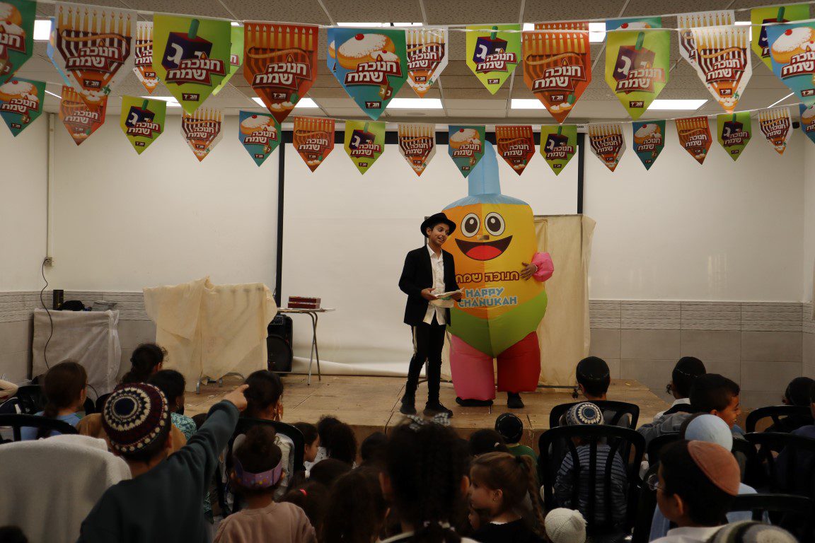 לרגל חג החנוכה נערכה מסיבת ילדים פעילה , בא זכו הילדים לייצור ולצבוע ולקשט סביבונים, חנוכיות וכדים ולצפות בהצגה הסביבוניאדה שהציקו התמימים שמואל צדוק ויהונתן שמח שיחיו ברוב חן.