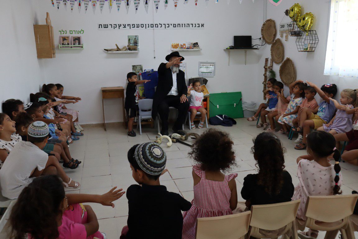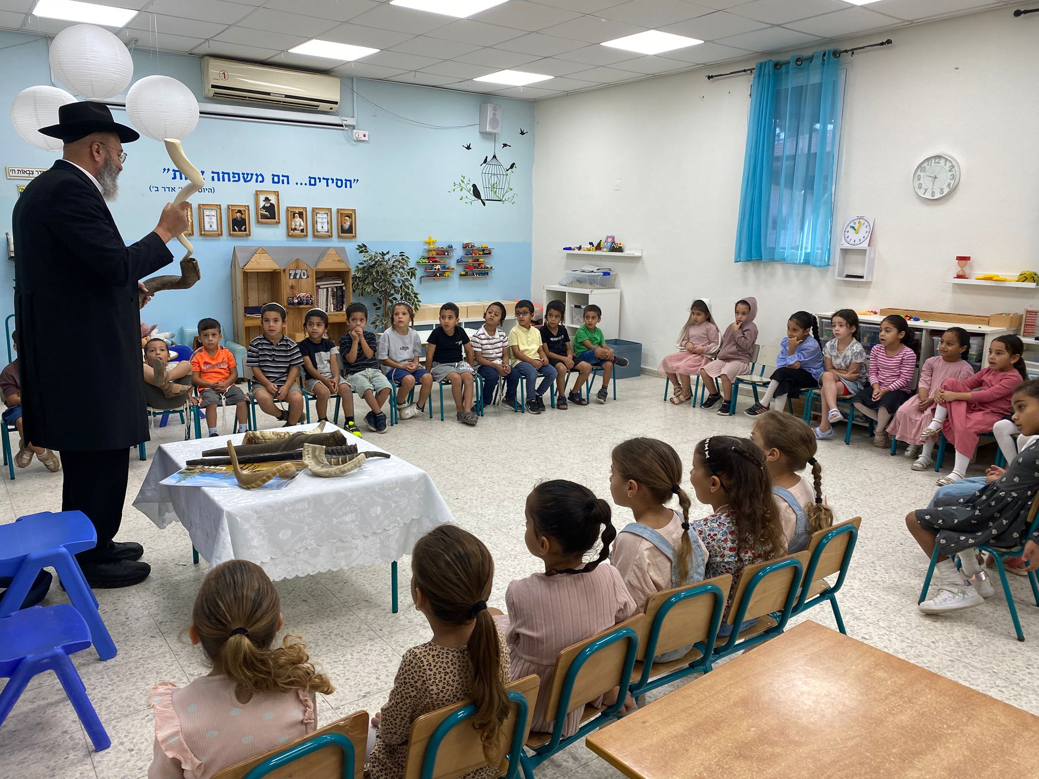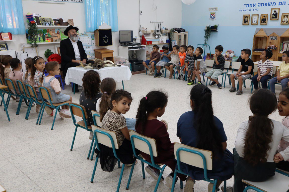 במהלך ימי השבוע עבר הרב סעדיה מעטוף שיחי' מנהל בית חב"ד ורב המושב בין גני הילדים, יחד אם תרמיל השופרות ואלבום תמונות הממחישות לילדים את סוגי השופרות ובעלי החיים שמהם ניתן לעשות שופר.